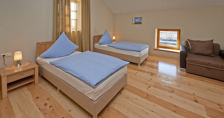 Sieben Räume - vier Doppelzimmer, eine Juniorsuite und zwei Seniorsuiten - stehen zur Verfügung. Alle Zimmer sind ausgestattet mit Dusche/WC, Flachbildschirm und Satelittenempfang, Telefon, Internetverbindung, Wlan, Minibar und Safe.